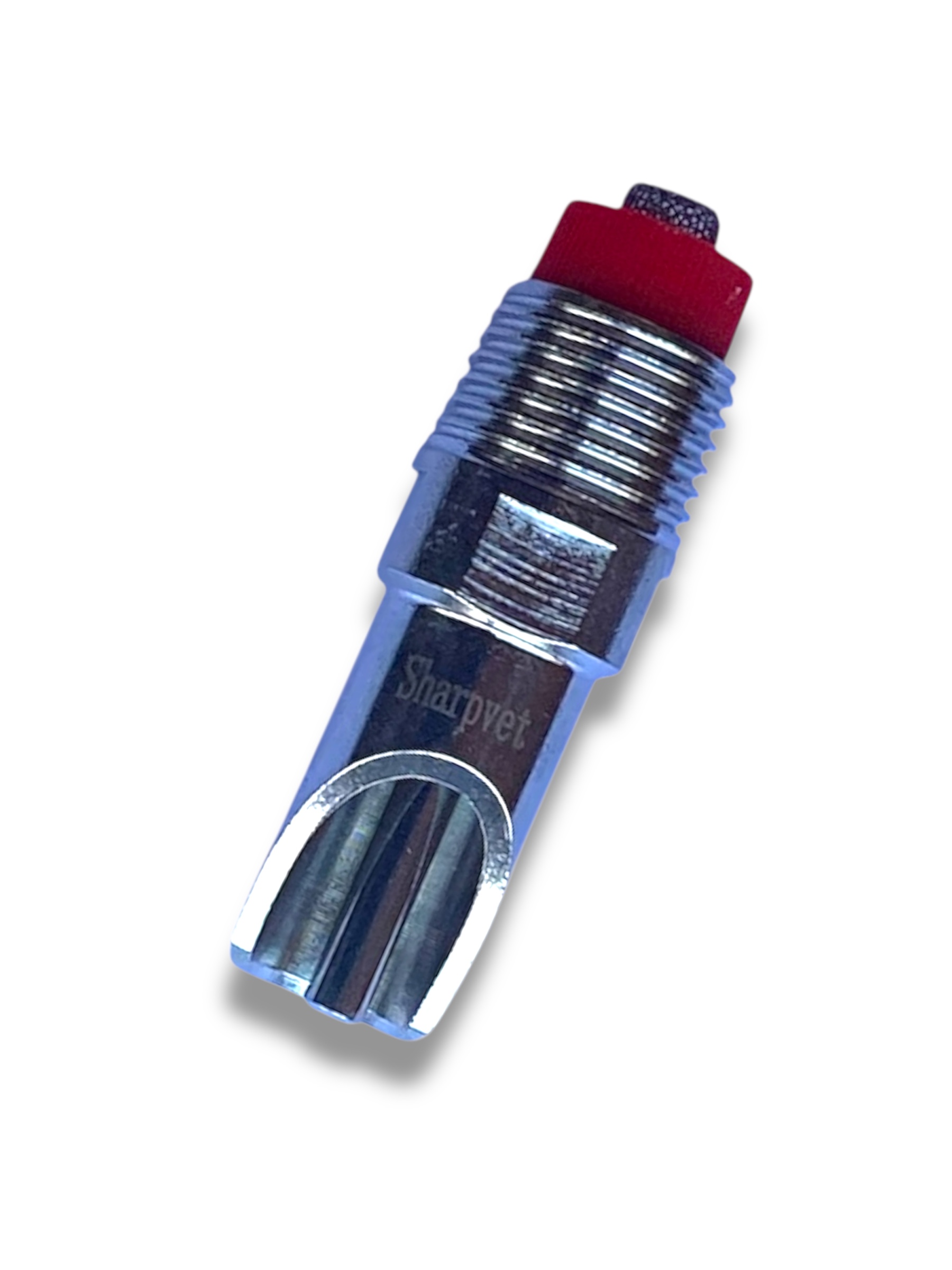 Bebedero tipo chupete diseñado para cerdos en crianza y engorda, fabricado en acero resistente con conexión de 3/8”. Proporciona un suministro de agua constante, higiénico y regulado, reduciendo el desperdicio y manteniendo la limpieza en el criadero.