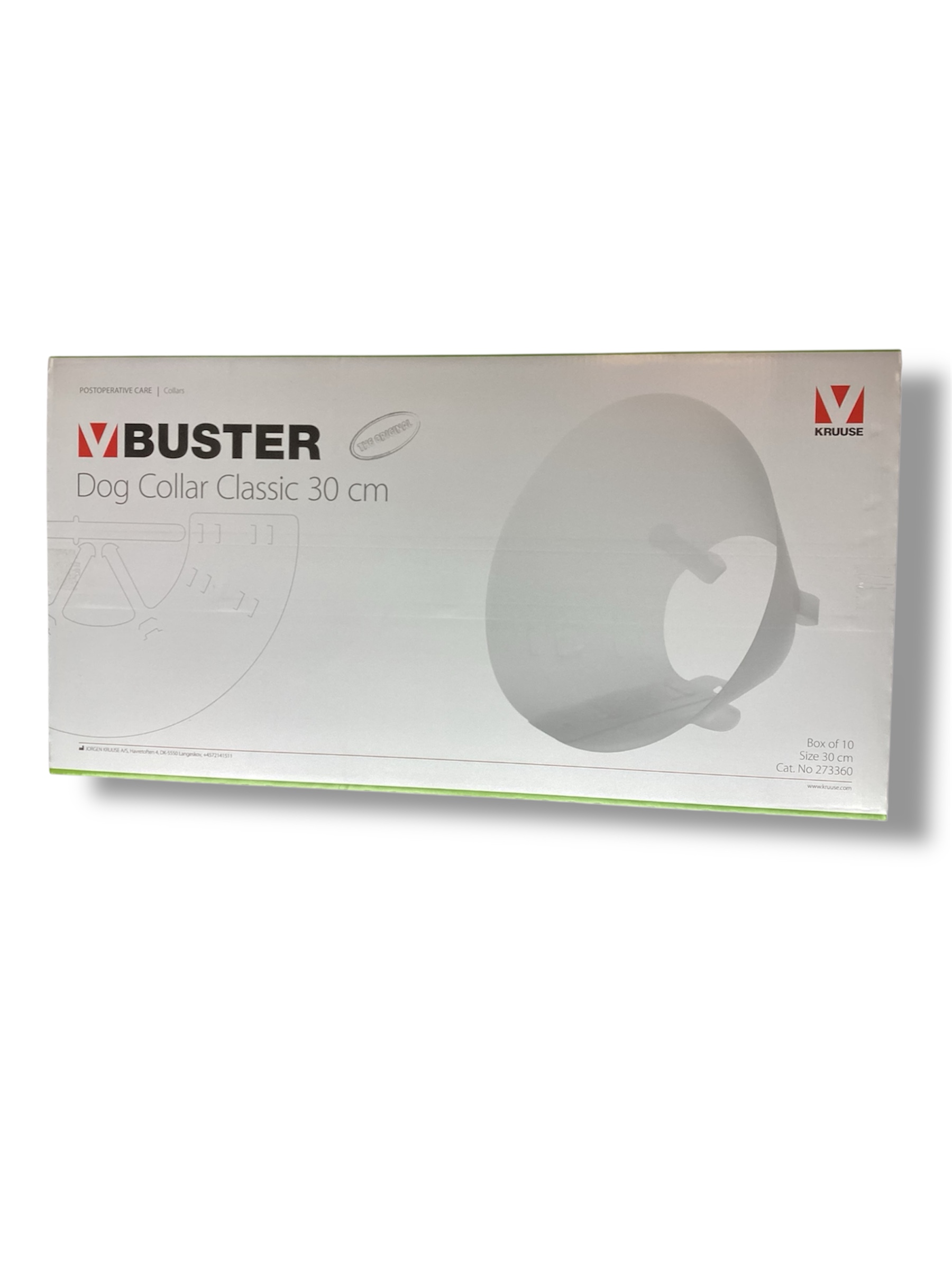 Collar isabelino veterinario de 30 cm. Fabricado en plástico resistente con cierres seguros.