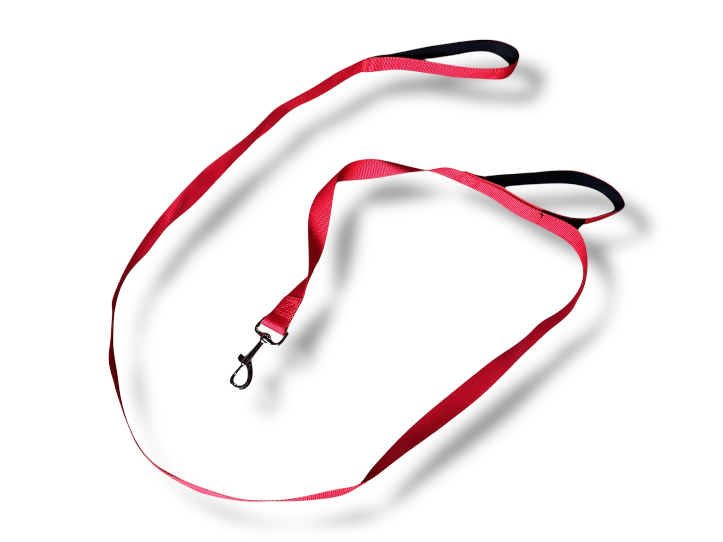 Correa de paseo doble de 3 cm de ancho y 1.70 m de largo, diseñada para llevar a dos perros al mismo tiempo de manera segura y cómoda.