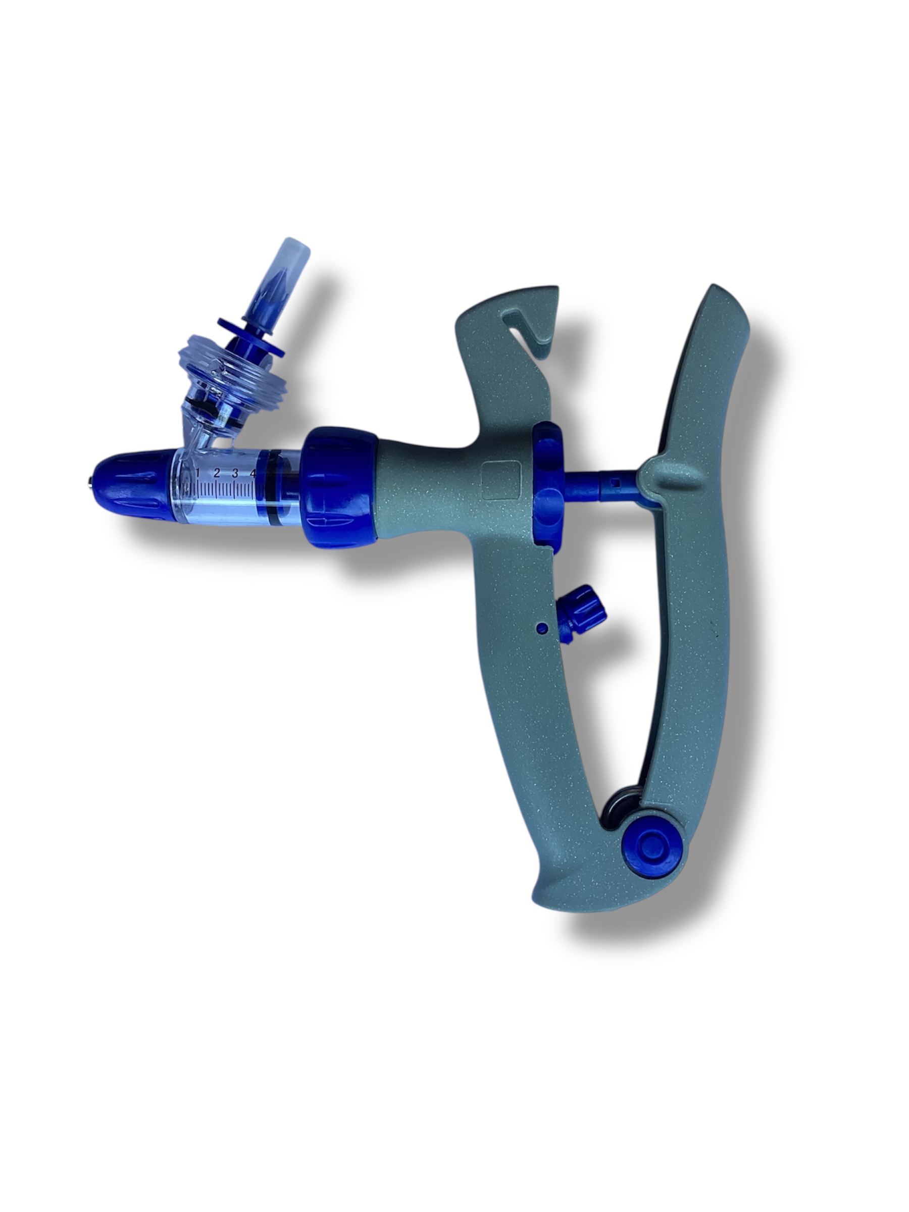 Jeringa automática con frasco dosificador de 5ml para aplicaciones repetitivas en animales.