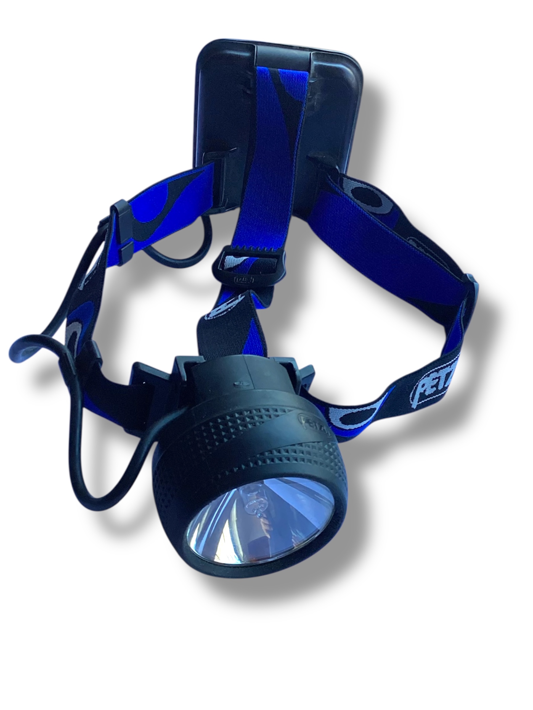 Lámpara de uso veterinario con sujeción frontal, ideal para procedimientos quirúrgicos.