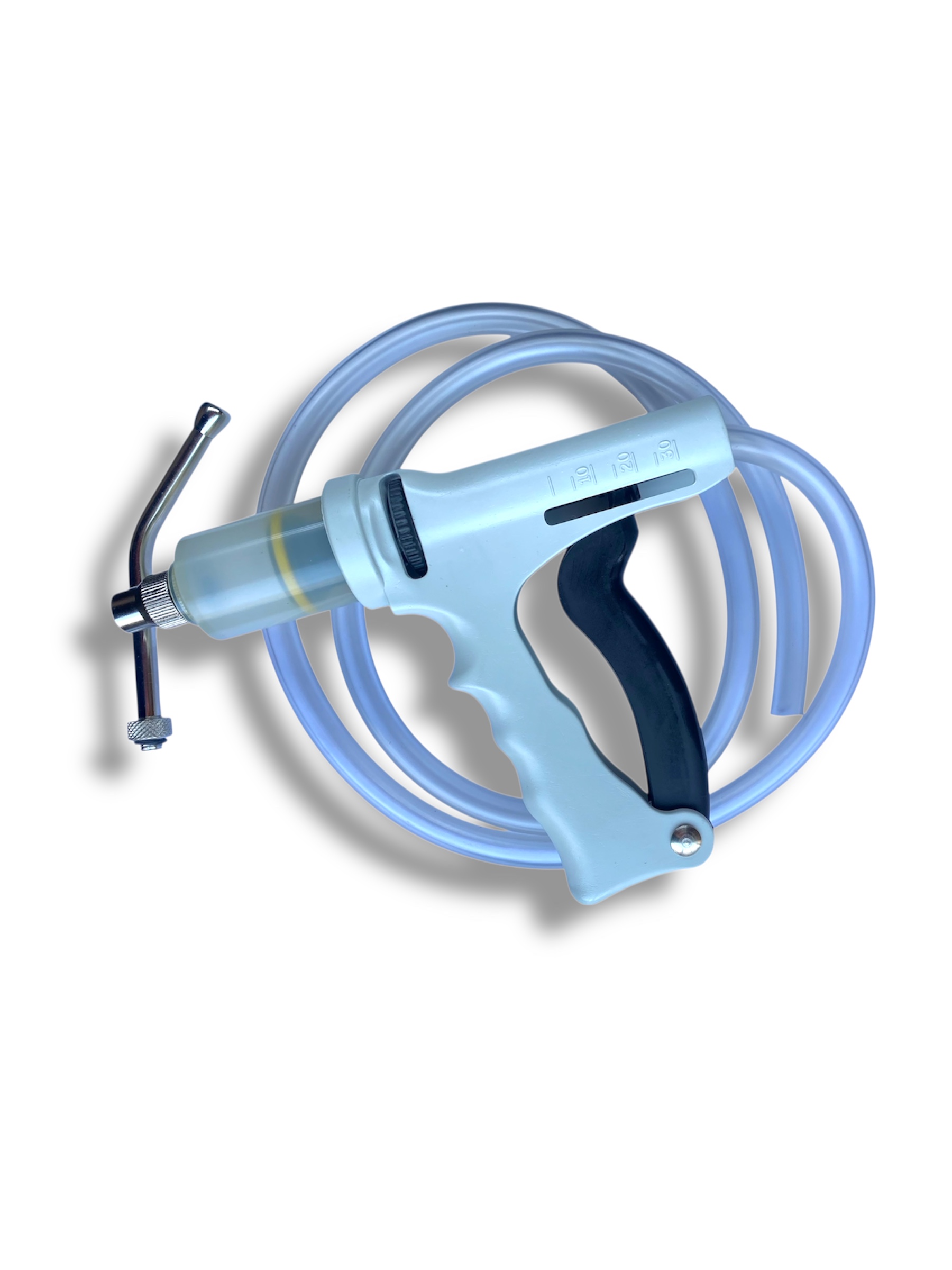La Pistola Dosificadora Automática 30 cc sin Bidón de Veterchevasco es la herramienta ideal para la aplicación oral de antiparasitarios, medicamentos o suplementos en animales de forma segura y eficiente.