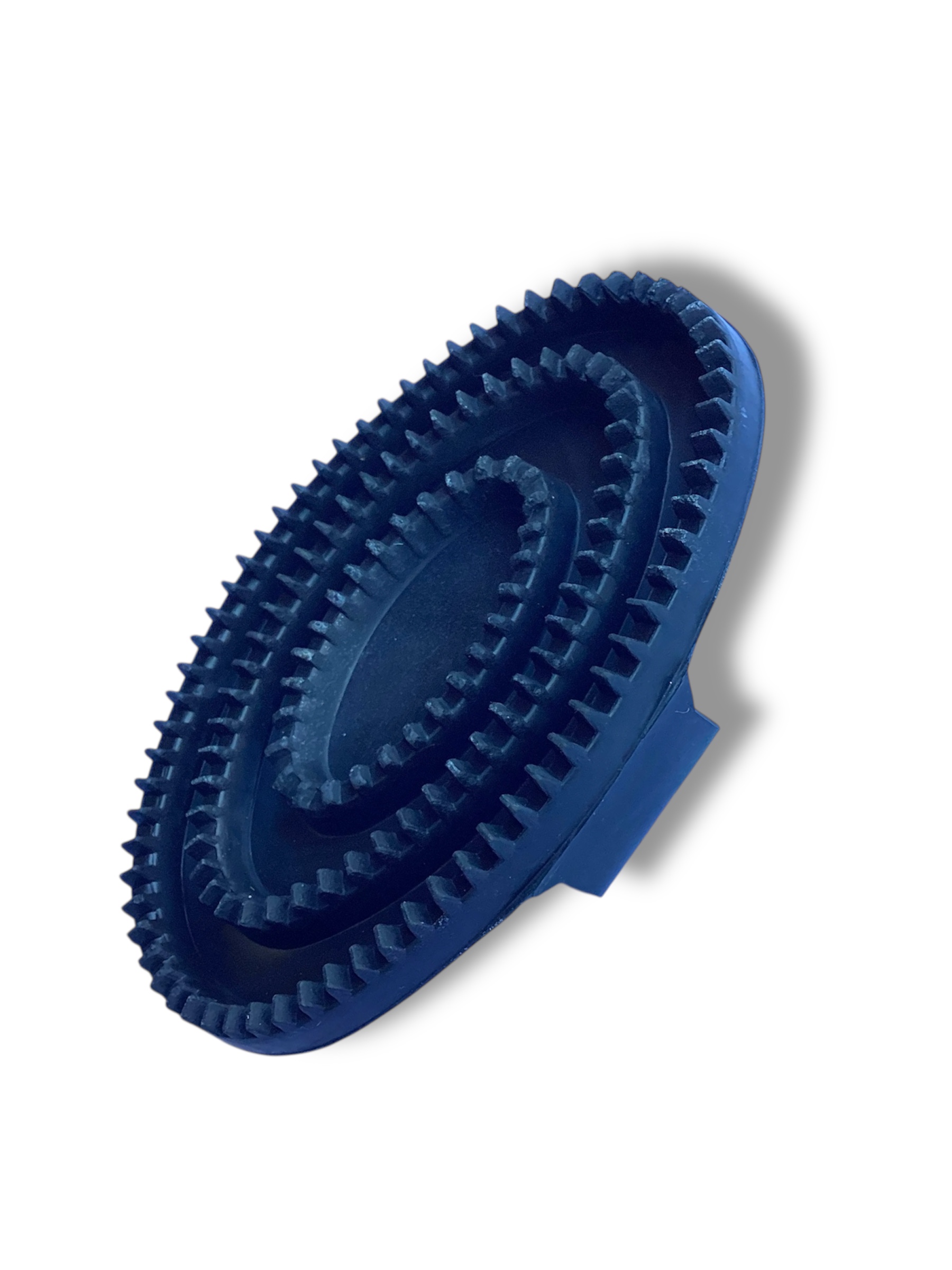 Rasqueta ovalada de goma dura, utilizada para limpieza y cuidado