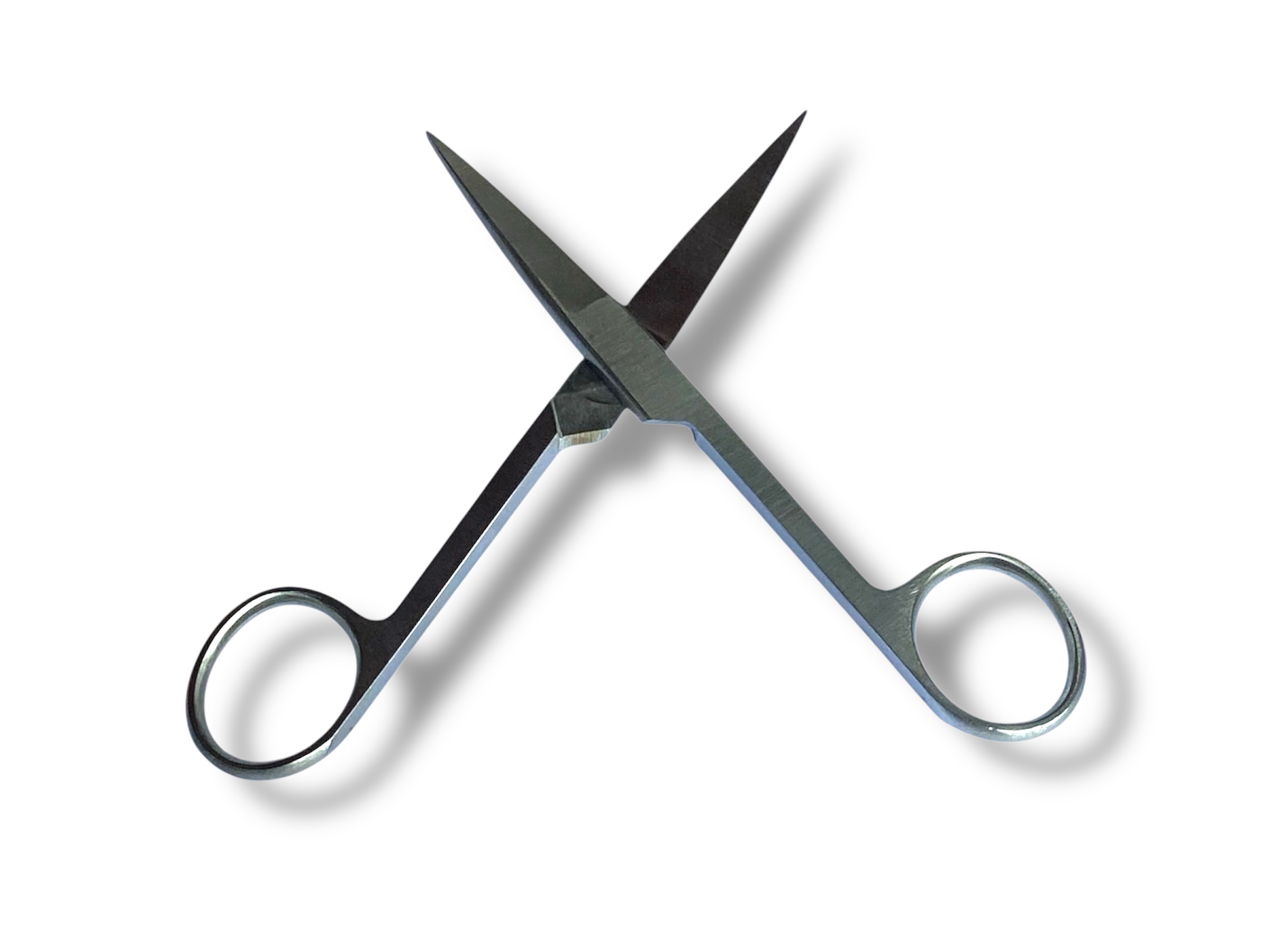 Tijera quirúrgica de punta fina y aguda, ideal para cortes precisos en cirugía veterinaria.