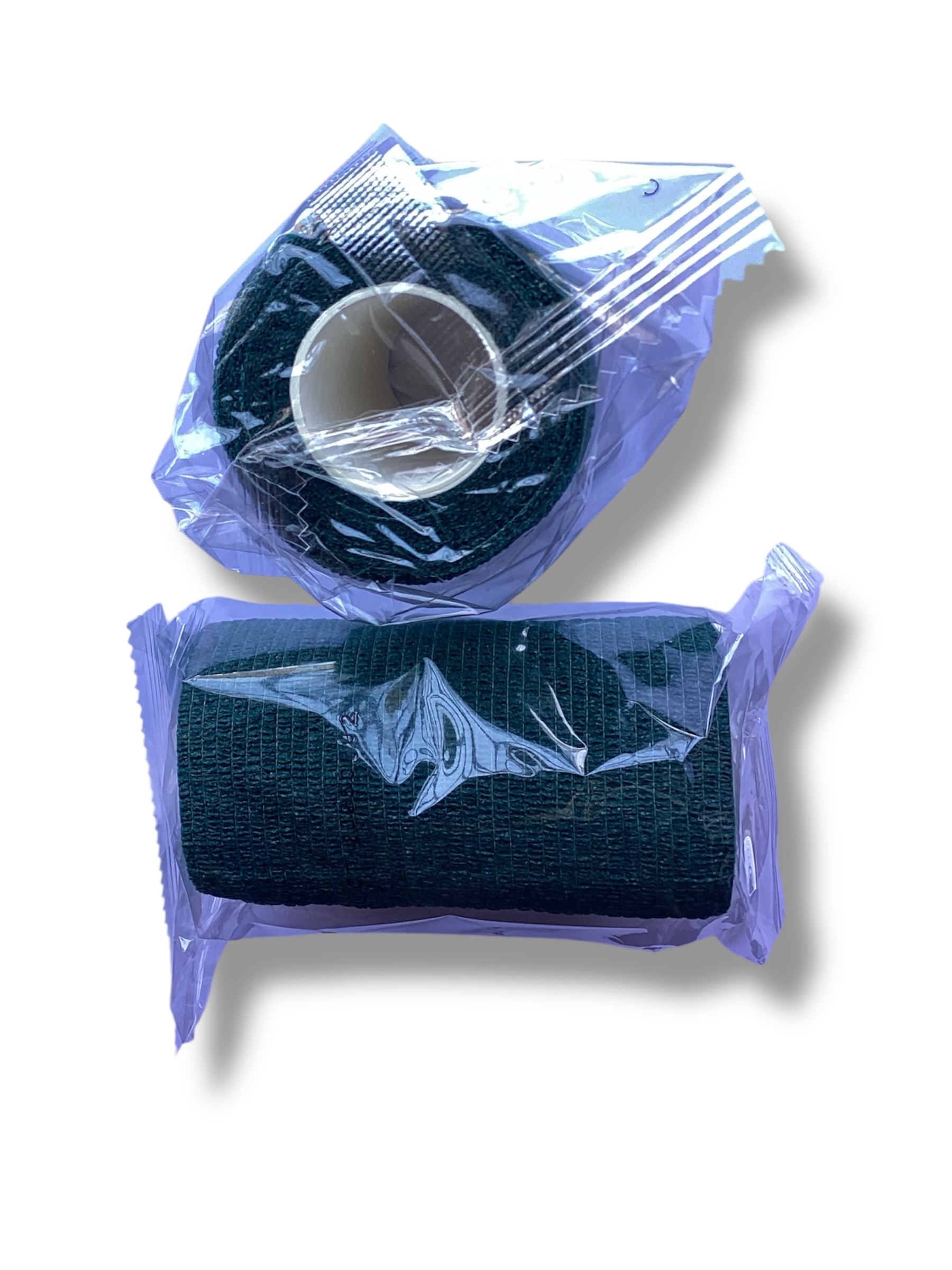 Venda elástica autoadhesiva de 10cm x 4.5m color verde, utilizada para fijación y protección en animales.