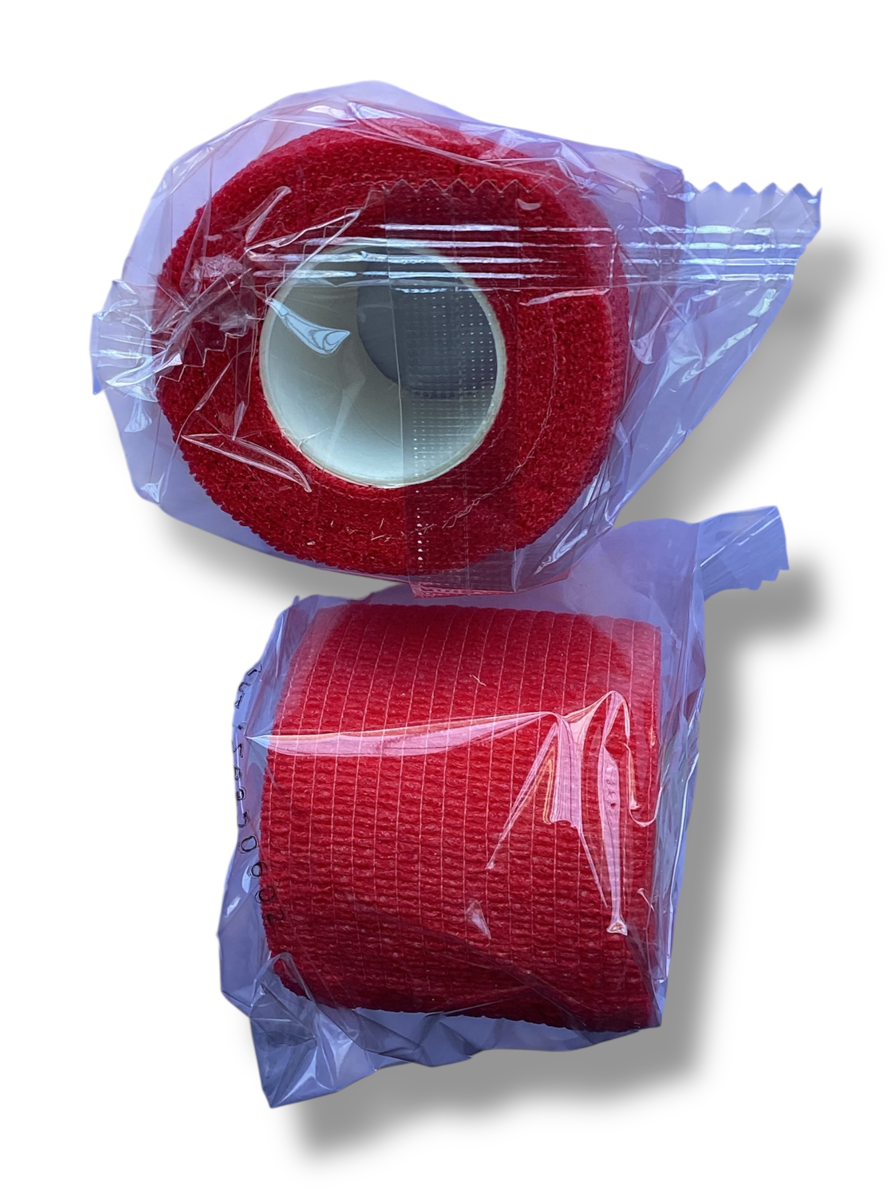 Venda elástica autoadhesiva de 5cm x 4.5m color rojo, ideal para sujeción y vendajes veterinarios.