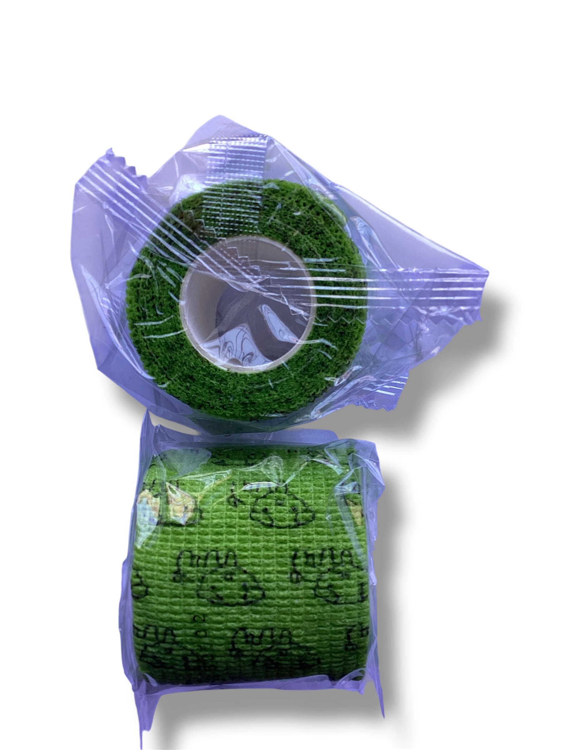 Venda elástica autoadhesiva de 5cm x 4.5m con diseño de huellas amarillas, ideal para uso veterinario en perros y pequeños animales.